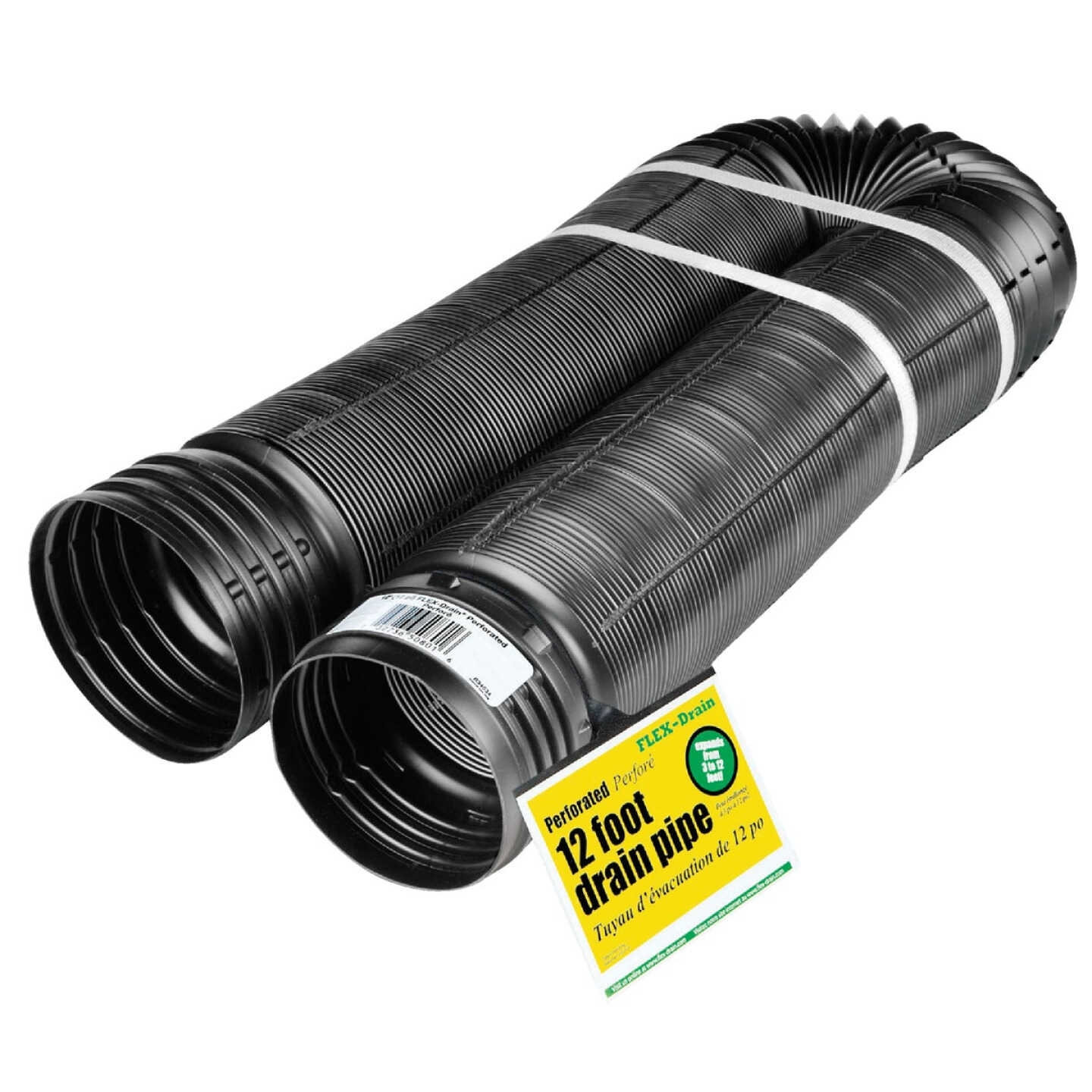 Available in lengths that expand from 3 Ft. to 12 Ft. and 6 Ft. to 25 Ft. Perforated FLEX-Drain can be used in most drainage applications. The soil-tight fittings are built into the pipe, the pipe holds its shape after it is bent, therefore no other connectors need to be purchased to connect multiple pieces of drain pipe together. Simply dig your trench, lay your FLEX-Drain pipe, and cover it up. FLEX-Drain meets the Corrugated Polyethylene Pipe Association’s test for crush resistance.